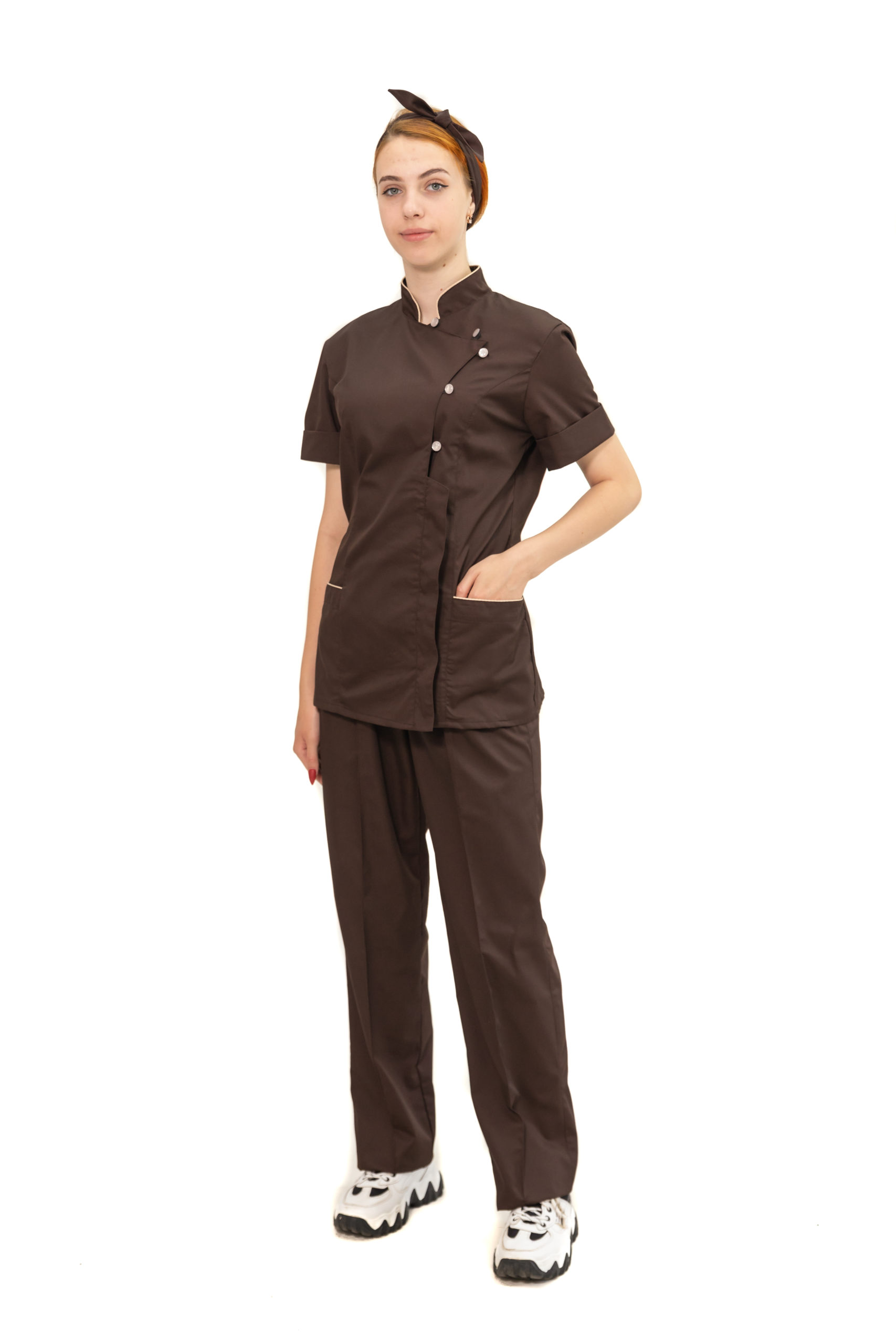 Костюм “Франція” від Polaris складається з кітеля та штанів на резинці. Костюм з якісних,сетрифікованих матеріалів та фурнітури. Тканина сорочкова ( 50% х/б, 50 п/е). Костюм представлений в магазині Polaris в кількох кольорах (фото в галереї).