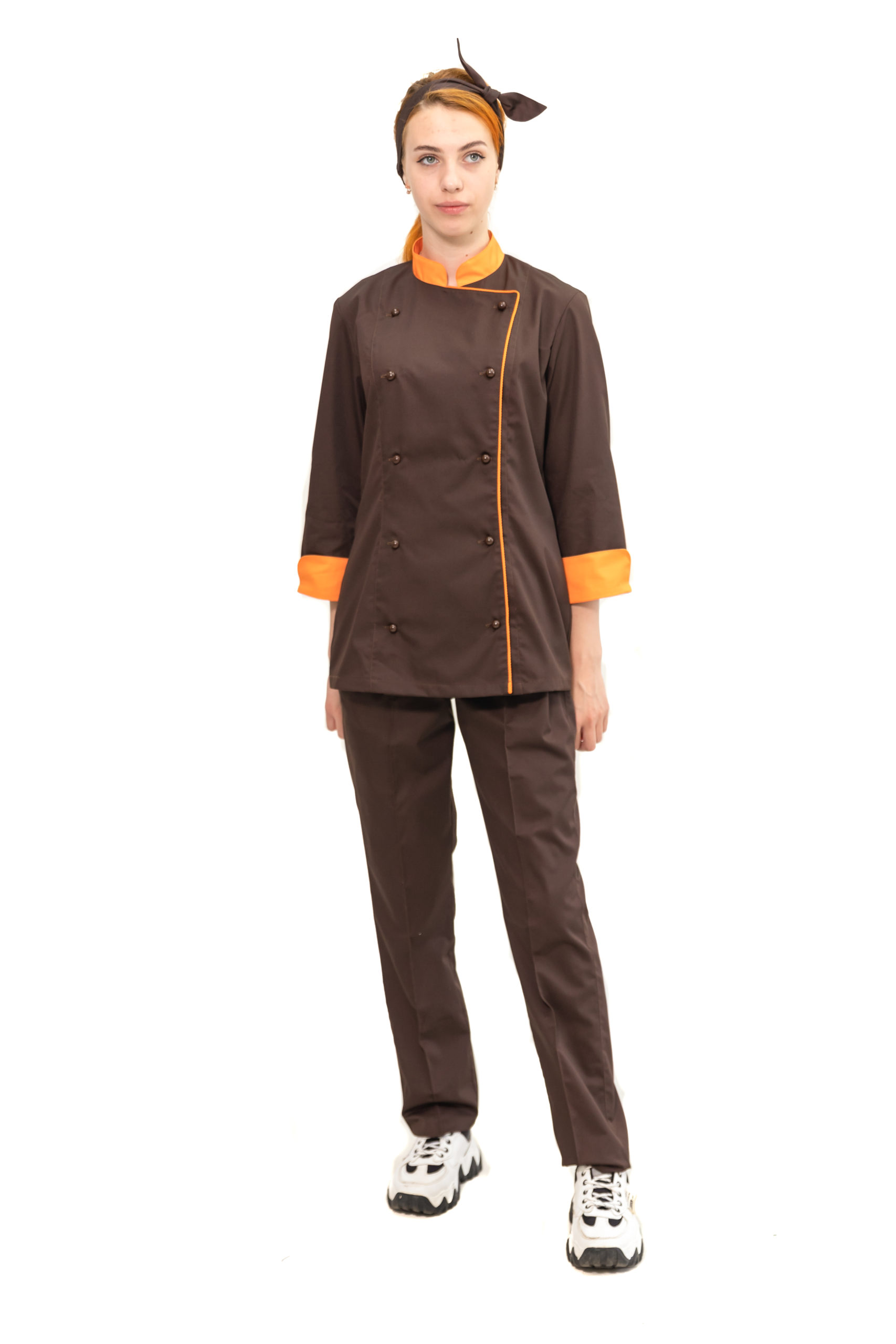 Костюм відшитий з високоякісної, сертифікованої тканини з достатнім вмістом хлопку, що є дуже важливим для працівників, які працюють на кухні, де підвищена тепмпература. Також використана якісна фурнітура, що дозволяє гарантувати нам довговічність нашого костюму.