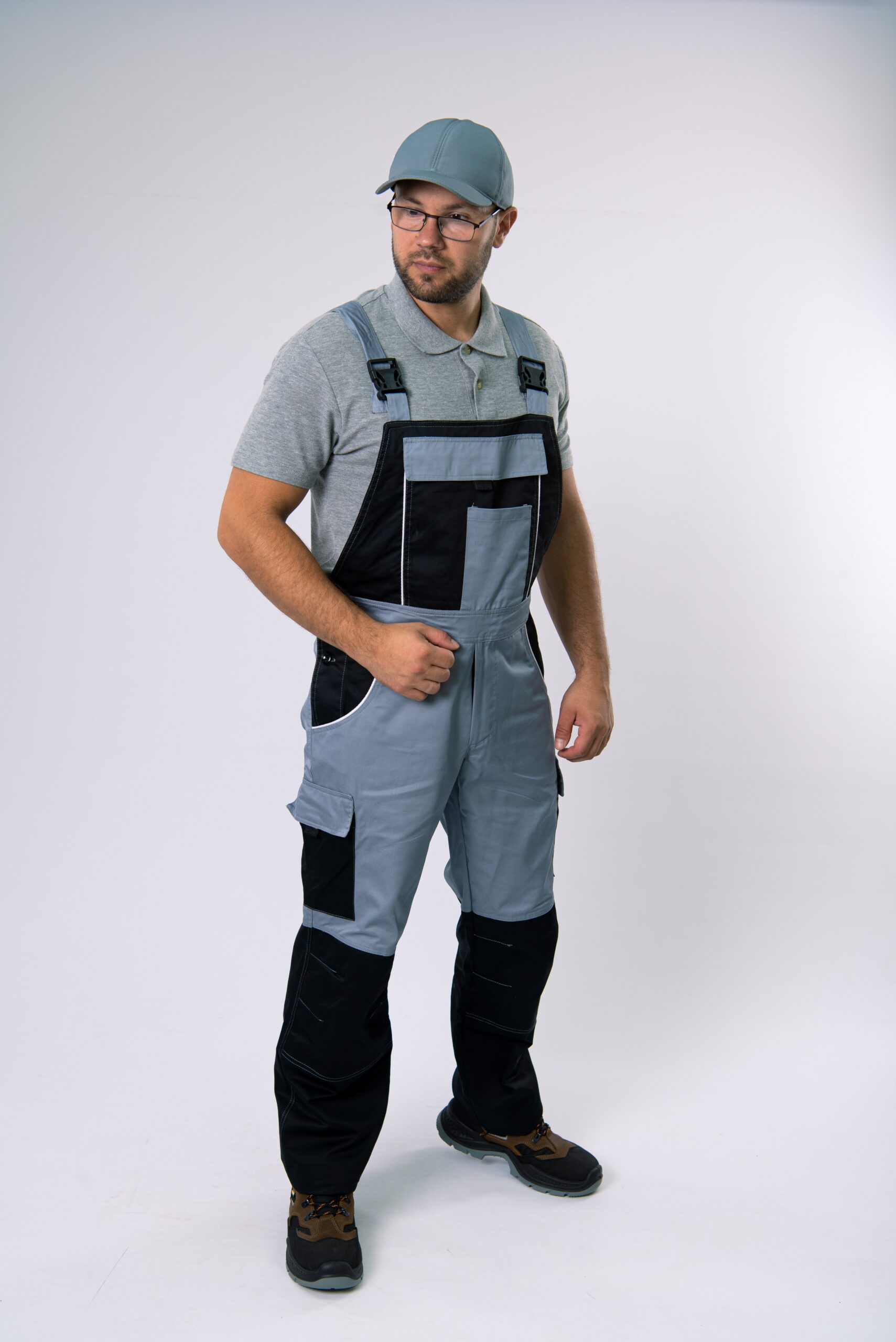 Напівкомбінезон оснащений накладними кишенями, посиленими колінами та вставками з міцної тканини для підвищеної зносостійкості.