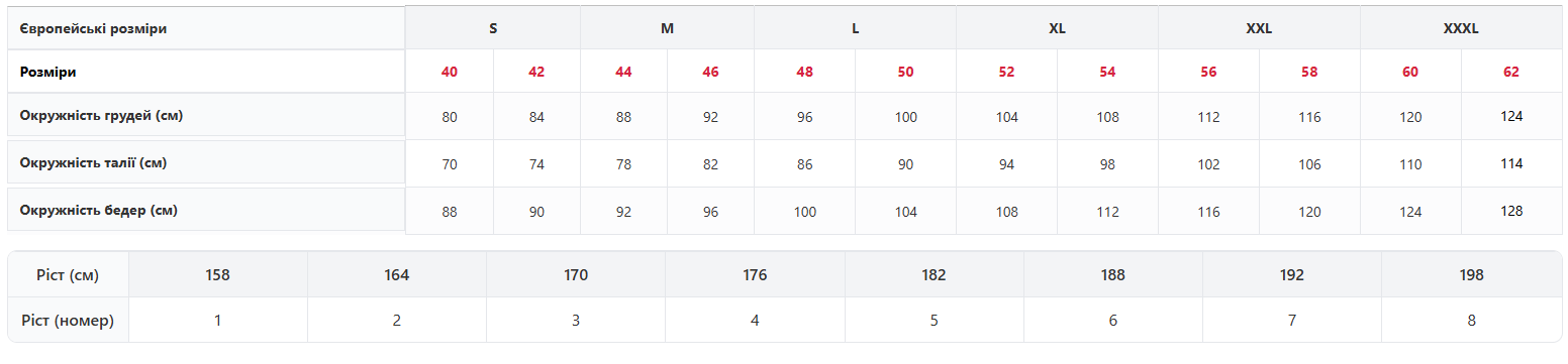 Окружність бедер (см) 8890 9296 100104 108112 116120 124128