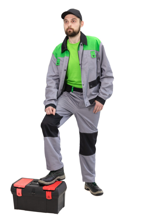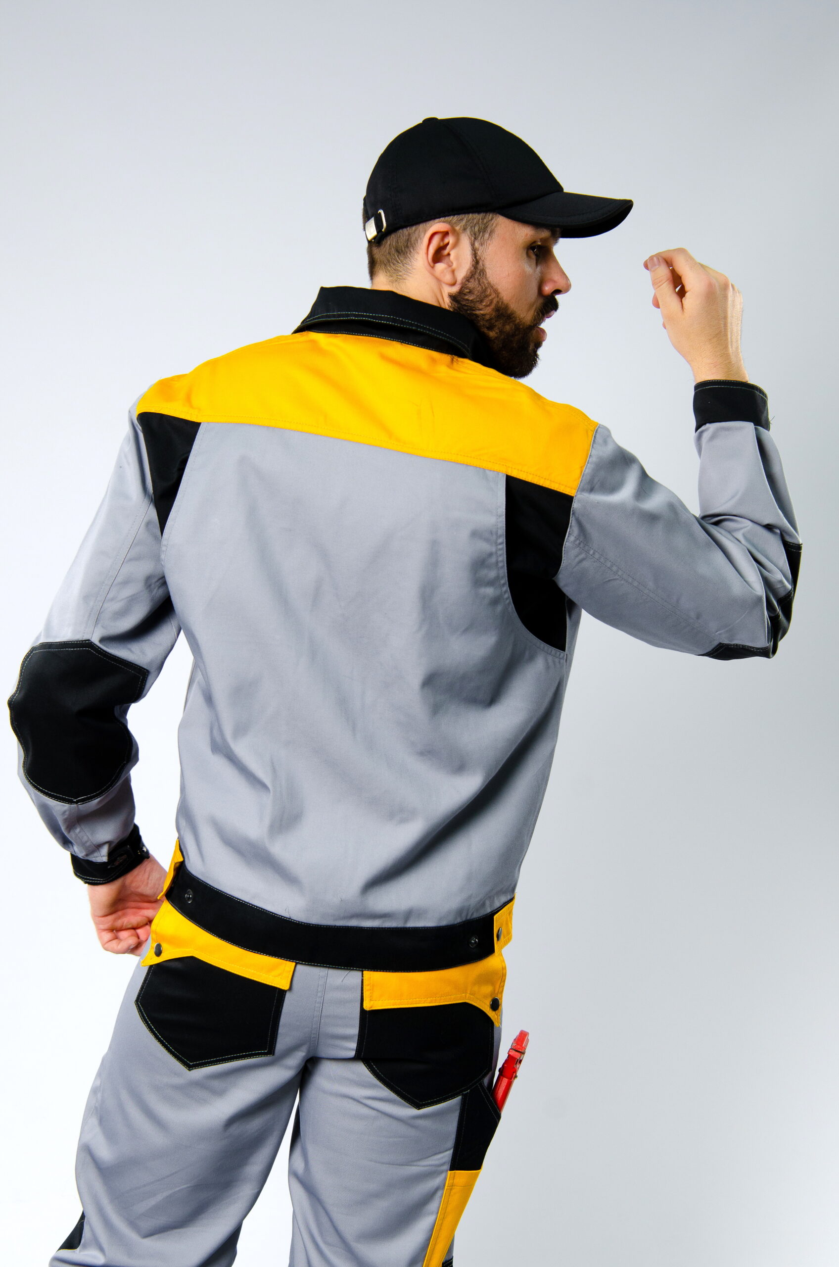 Робочий костюм «Технік» складається з куртки та штанів, виконаних у стильному поєднанні трьох кольорів. Модель створена з міцної, зносостійкої тканини, що забезпечує комфорт і захист під час щоденної роботи.