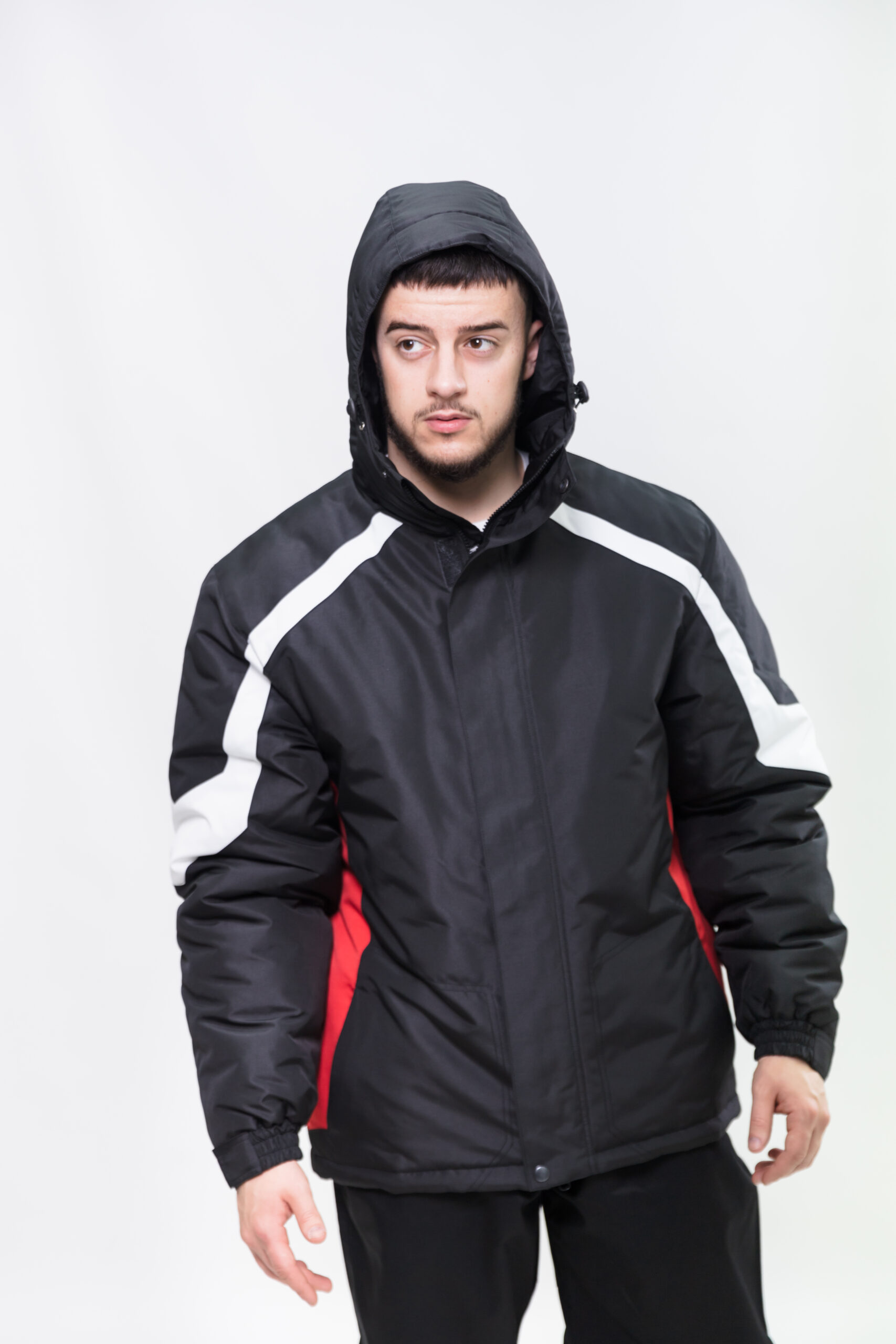 Зручна та надійна робоча куртка в чорному кольорі з контрастними вставками білого та червоного відтінків. Утеплювач забезпечує комфорт у холодну погоду, а міцні матеріали гарантують довговічність під час активної роботи. Практичний дизайн робить куртку ідеальним вибором для щоденного використання на робочому місці.